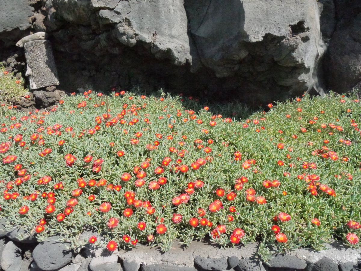 An einigen Stellen wächst die afrikanische Mittagsblume in Lavalgeröll.