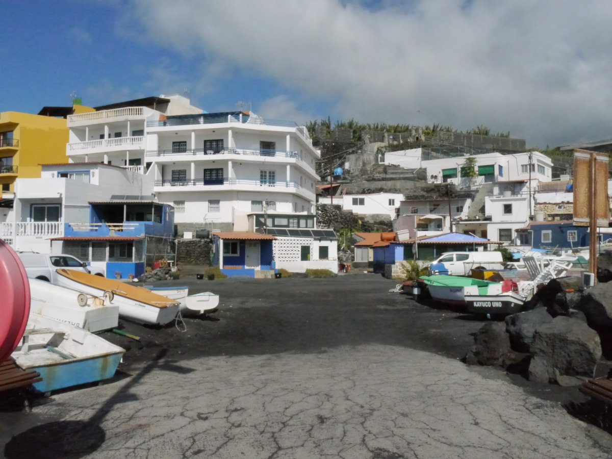 Zurück geht es am Leuchtturm an der Küste entlang. Hinter dem Bananenfeld kann man links in eine Piste einbiegen, die man an der nächsten Möglichkeit nach rechts verlässt. Kurz darauf ist man im Örtchen La Bombilla. Kleine nette Häuser und Boote prägen den Ort. Am Ortsausgang beginnt die Asphaltpiste, die auf den Hinweg führt.
