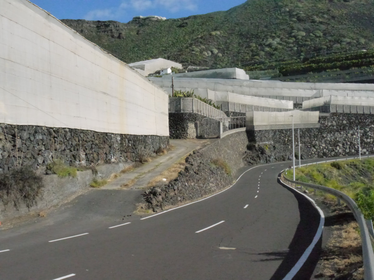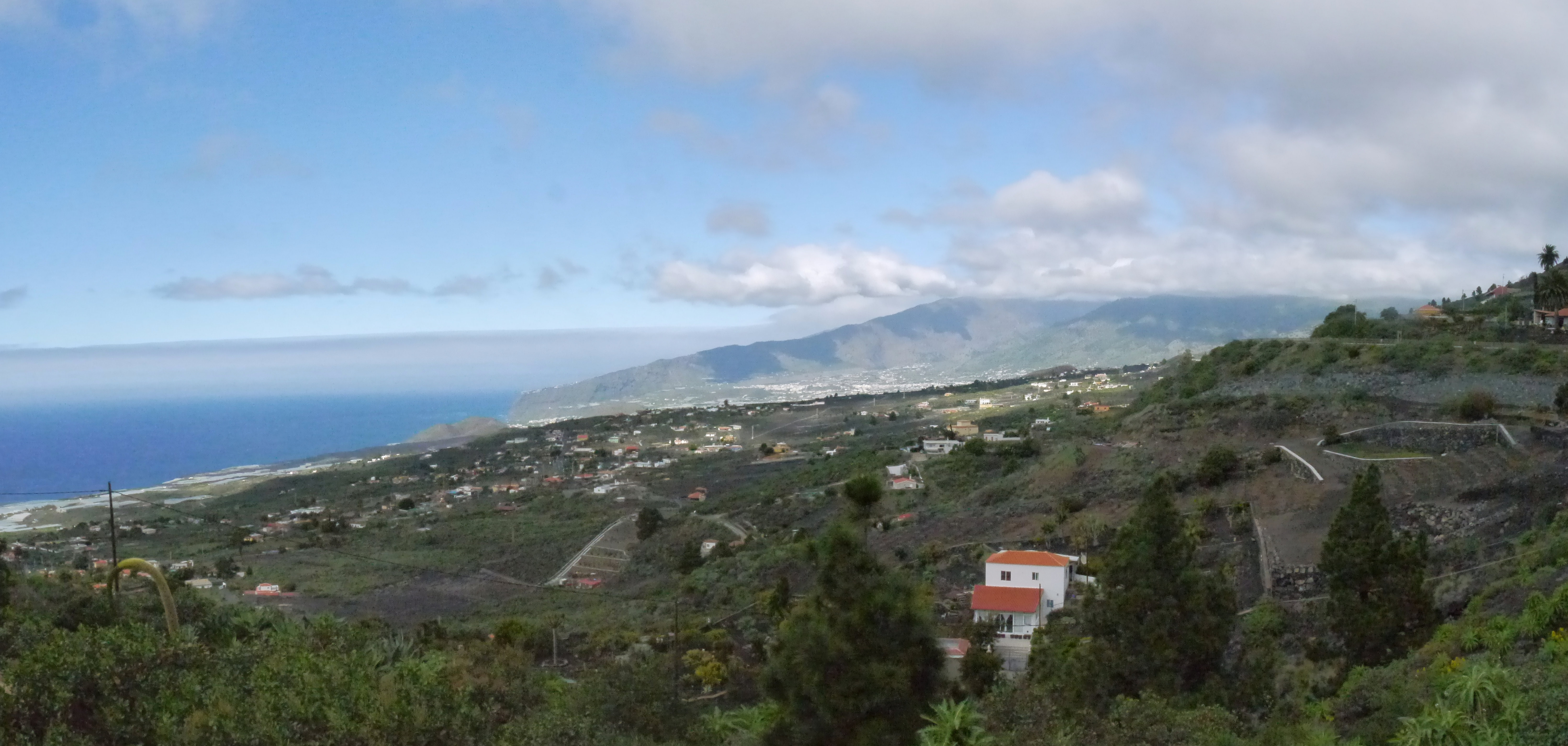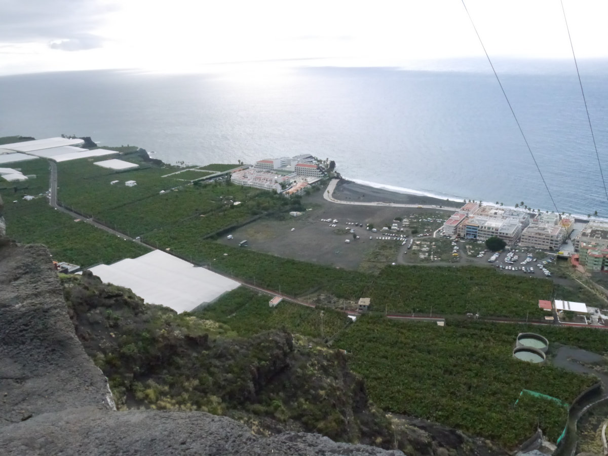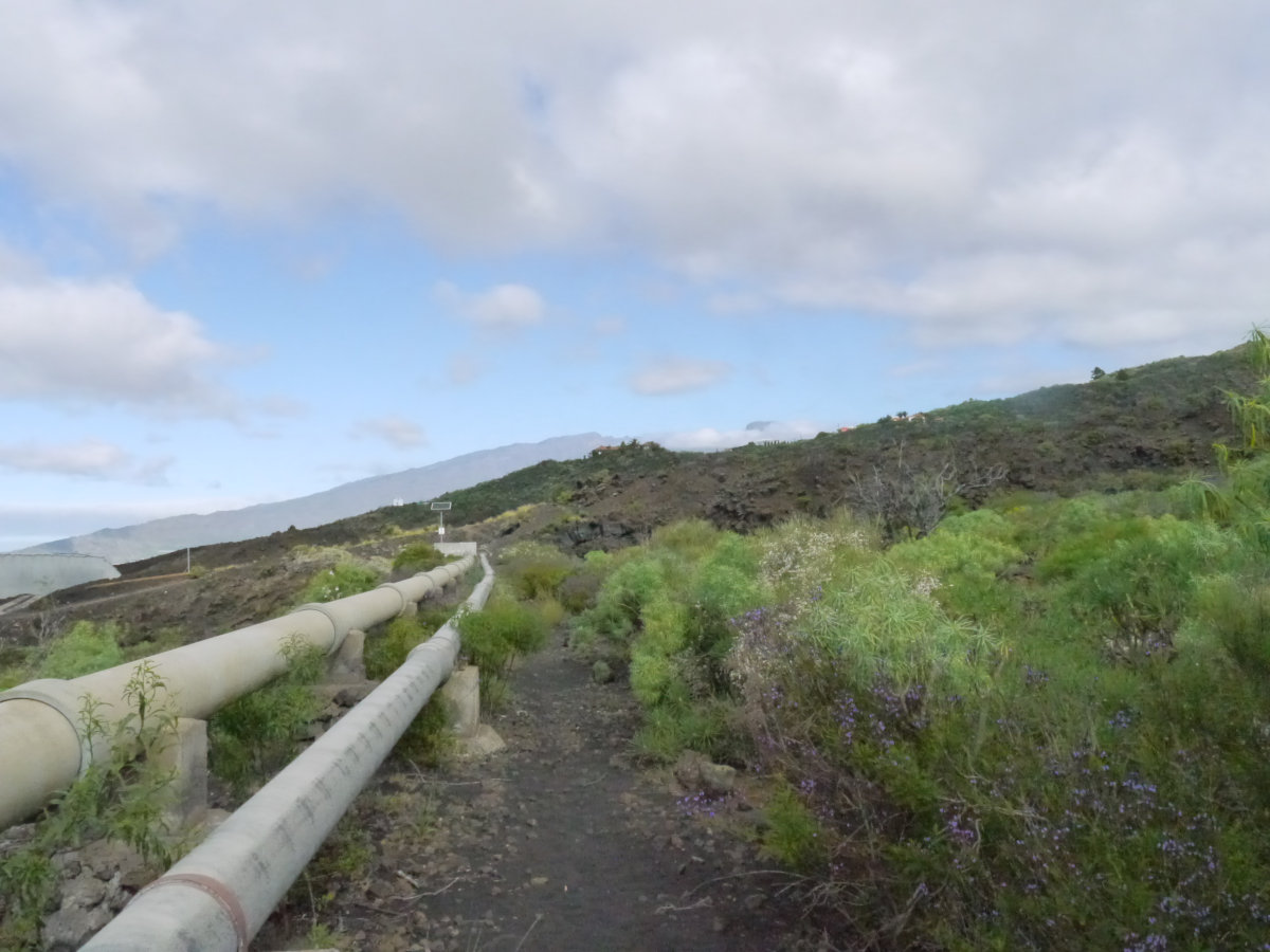 Startpunkt der Wanderung ist Puerto Naos. Man kann von hier den Bus 24 bis nach Playa Charco Verde nehmen, oder man läuft eine Weile an der Straße entlang. Es gibt einen separaten Fußweg und wenig Verkehr. Außer Bananenfelder gibt es nicht viel zu sehen. Von der Bushaltestelle läuft man weiter in Fahrtrichtung, hinter der ersten Linkskurve führt links eine Betonpiste in die Bananenplantagen. Hier nimmt man zweimal die rechte Abzweigung an den Kreuzungen. In der nächsten Linkskurve führt geradeaus ein verwilderter Pfad, dem folgt man. Er führt gleich darauf bergauf, an den Feldern vorbei. Man überquert eine Wasserleitung, es geht steil bergan.