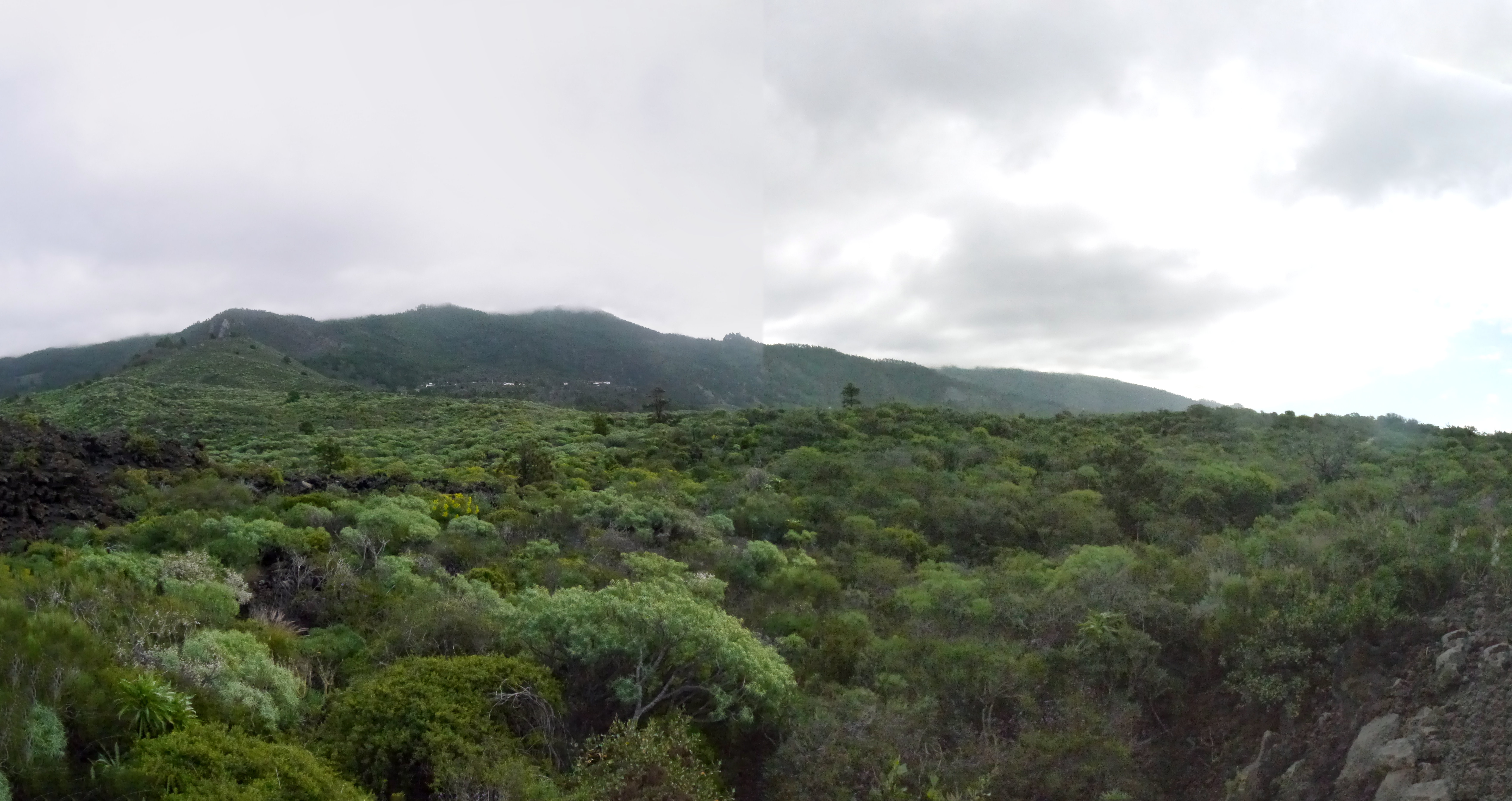 Auf der Hochebene verläuft der Weg fast eben, man überquert ein doppeltes Wasserrohr und folgt diesen nach links. Kurze Zeit später folgt man einer Piste nach rechts, es geht wieder leicht bergan. Die Piste endet an einer kleinen Straße, geradeaus führt ein Pfad hinauf, der auf die aspaltierte Straße Camino Cuesta Blanca trifft. Dieser folgt man, bis man in Jedey die Hauptstraße erreicht. Eine kleine Bar lädt zum Verweilen ein. Da Wolken aufziehen, lohnt es sich nicht, weiter nach oben zu gehen. Geplant war, den Wanderweg wenige Meter südlich der Bar zu folgen.